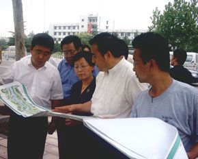 2004年8月國(guó)家環(huán)保總局領(lǐng)導(dǎo)視察指導(dǎo)工作 上圖右一為集團(tuán)公司總工程師穆乃杰
