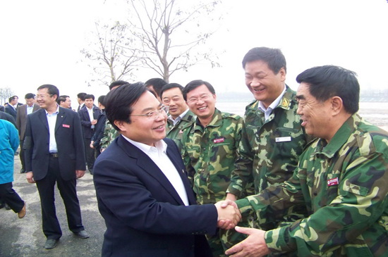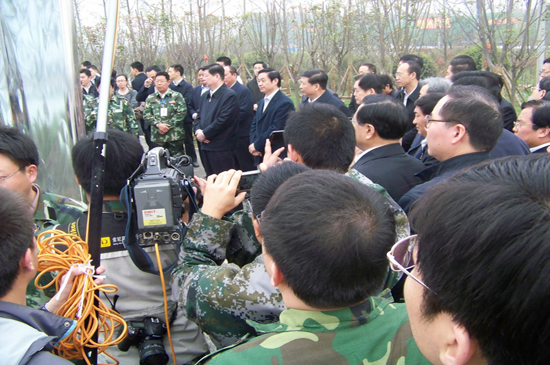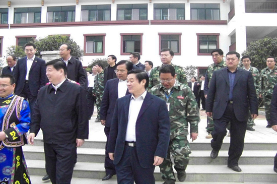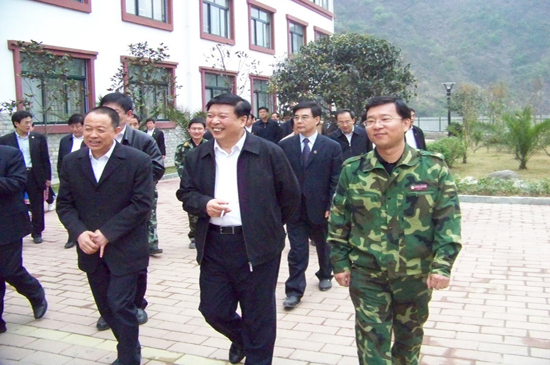 4月10日上午,山東省黨政代表團在省委書記姜異康、省長姜大明率領(lǐng)下,到北川新縣城檢查指導(dǎo)援建工作,山東省十七地市黨政負責人參加檢查。