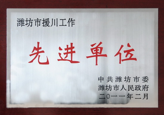 集團公司和市政公司榮獲“濰坊市援川工作先進單位”榮譽稱號