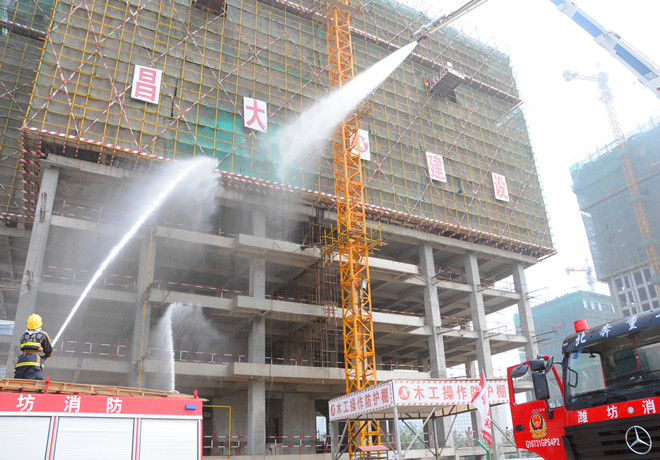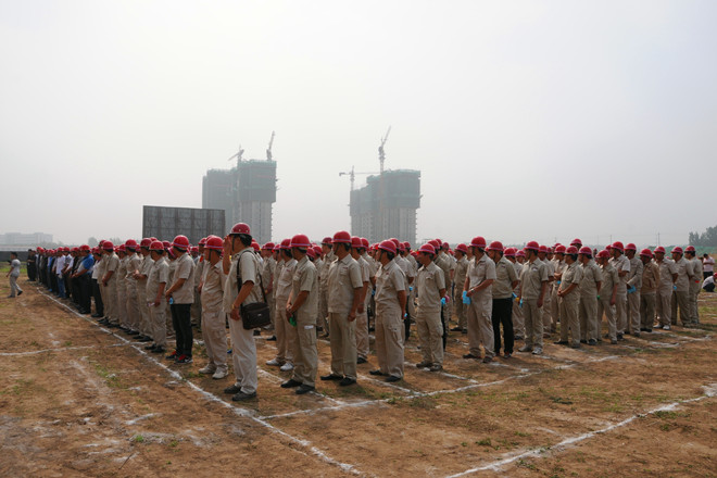 為切實推進(jìn)施工現(xiàn)場消防安全管理,提高全員消防應(yīng)變能力,以實際行動開展好“六月安全月”活動,2013年6月5日上午,集團(tuán)公司在高新區(qū)中央商務(wù)區(qū)施工現(xiàn)場組織了大型消防演練活動。來自各基層單位分管生產(chǎn)的經(jīng)理、工程管理人員,施工現(xiàn)場專職安全員,演練現(xiàn)場三個分公司的全體管理人員和勞務(wù)專業(yè)隊伍,高新區(qū)工程建設(shè)、總承包、監(jiān)理單位以及勞務(wù)分包單位代表等近1000人參加了演練活動。