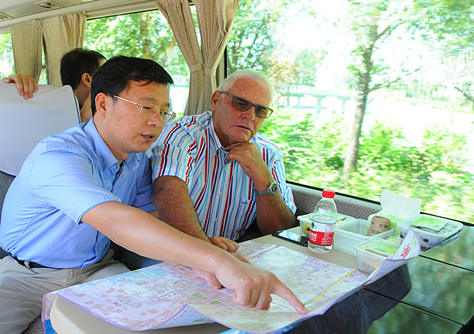 19日,沃克夫婦一行先后參觀了濰坊城市規(guī)劃藝術(shù)館、北辰綠洲濕地公園、奧體公園體育場、會展中心、火車站南廣場、寶通陸號、泰和上筑、集團新辦公樓。在城市規(guī)劃藝術(shù)館,沃克夫婦一行參觀了濰坊城市規(guī)劃沙盤、觀看了濰坊城市規(guī)劃影片,對濰坊市的基本情況有了一個整體了解;在北辰綠洲濕地公園,濰坊市規(guī)劃局副局長楊錫忠、規(guī)劃用地科科長王列生陪同參觀并介紹了北辰中央休閑區(qū)的項目定位、總體規(guī)劃和商業(yè)開發(fā)用地情況,沃克先生表示對該項目很感興趣;在火車站南廣場開發(fā)建設(shè)指揮部,市建設(shè)局副調(diào)研員付深遠(yuǎn)向客人介紹了火車站南廣場周邊地區(qū)規(guī)劃方案。