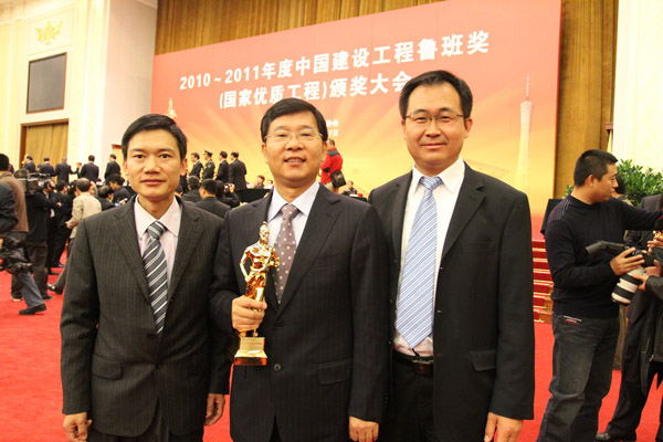 11月7日,由中國建筑業(yè)協(xié)會主辦的2010-2011年度中國建設工程魯班獎(國家優(yōu)質工程)頒獎大會在北京人民大會堂隆重舉行。集團公司董事長徐鵬強以及魯班獎工程——北川人民醫(yī)院承建單位、參建單位代表胡曰俊、于社強參加頒獎大會。參加本次大會的有各省、自治區(qū)、直轄市建筑業(yè)協(xié)會(聯合會、施工行業(yè)協(xié)會),有關行業(yè)建設協(xié)會和其他相關單位的負責人以及獲得魯班獎的承建單位和參建單位代表共計1500余人。