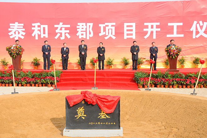 2012年11月20日上午,由集團泰和公司開發(fā)的“泰和東郡”項目舉行了隆重的開工奠基儀式。集團高管層領導徐鵬強、李坤明、姜建魯、穆乃杰、張連悅、閆鵬、劉雁冰出席開工奠基儀式。出席開工奠基儀式并在主席臺就位的領導和嘉賓有濰坊市委常委、高新區(qū)黨工委書記、管委會主任趙志遠,高新區(qū)黨工委副書記、管委會副主任陳甲才,高新區(qū)黨工委委員、管委會副主任兼經(jīng)發(fā)局局長曲志剛,高新區(qū)黨工委委員、黨政辦公室主任唐偉,集團董事長徐鵬強,山東海王銀河醫(yī)藥公司董事長孔憲俊,集團副總經(jīng)理兼泰和公司總經(jīng)理姜建魯。集團全體中層以上人員、第四分公司部分管理人員參加了開工奠基儀式。開工奠基儀式由高新區(qū)黨工委委員、管委會副主任譚建民主持。