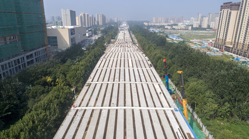 集團(tuán)承建寶通街快速路項(xiàng)目順利進(jìn)入全新節(jié)點(diǎn)——高架箱梁吊裝全部完成