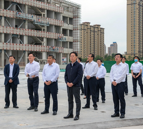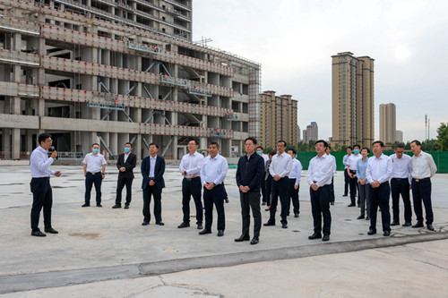 2022年9月24日下午,全市2022年第二次項目建設督查觀摩活動在奎文區(qū)、濰城區(qū)進行。市領導江敦濤、劉運、李蘭祥、卞漢林、楊建華、呂珊珊、劉玉、鞠俊海以及市發(fā)改委、市統(tǒng)計局、市科技局、市自然資源和規(guī)劃局、市農業(yè)農村局、市商務局、市文化和旅游局、市衛(wèi)健委主要負責人參加督導觀摩。奎文區(qū)委書記周俊、區(qū)長劉建安,濰城區(qū)委書記劉金國、區(qū)長程錦參加所在區(qū)督查觀摩活動。在濰城區(qū)調研集團四建公司總承包施工的濰城區(qū)人民醫(yī)院項目時,集團公司董事長徐鵬強,副總裁吳杰陪同參加。