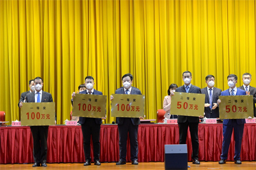徐鵬強董事長榮獲高新區(qū)突出貢獻企業(yè)家 集團總裁朱九洲參會并代為領取獎牌