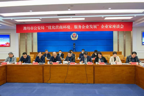 2023年3月22日下午,濰坊市公安局企業(yè)家座談會在市公安局北樓二樓電視電話會議室舉行。濰坊市副市長、市政府黨組成員、市公安局黨委書記、局長、督察長徐磊,濰坊市委統(tǒng)戰(zhàn)部副部長、濰坊市工商聯(lián)黨組書記徐鳳徽,濰坊市公安局在家領(lǐng)導(dǎo)班子,濰坊市各領(lǐng)域重點(diǎn)企業(yè)負(fù)責(zé)人,市公安局指揮中心、政治部等有關(guān)部門主要負(fù)責(zé)同志出席會議。會議通報了去年以來市公安機(jī)關(guān)有關(guān)工作情況,解讀近期市公安局出臺的服務(wù)企業(yè)相關(guān)文件,聽取了與會同志對公安機(jī)關(guān)服務(wù)企業(yè)的相關(guān)需求和意見建議,徐磊副市長講了話。會上,集團(tuán)公司董事長徐鵬強(qiáng)對一直以來公安系統(tǒng)為企業(yè)發(fā)展?fàn)I造的良好環(huán)境表示感謝,對廣大公安干警落實(shí)治安防范措施、加大掃黑除惡力度;嚴(yán)厲打擊經(jīng)濟(jì)犯罪、挽回經(jīng)濟(jì)損失;交通運(yùn)輸中的指導(dǎo)服務(wù);網(wǎng)警部門高效的輿情管控等諸項(xiàng)工作中的辛勤付出表示真誠謝意。并希望繼續(xù)加強(qiáng)警企共建,共同攜手抓穩(wěn)定、?保平安、促和諧,在全市拼經(jīng)濟(jì)、搞建設(shè)、抓發(fā)展中做出更大的貢獻(xiàn)。