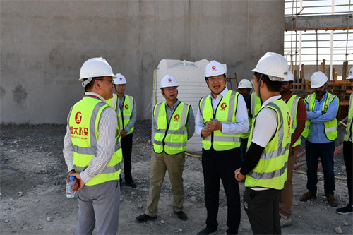 在多哈公司正在施工的水岸公寓6#樓及Simex物流園項目施工現(xiàn)場,徐鵬強董事長看望慰問項目施工人員,詳細了解工程施工進度、存在問題和員工生活等情況,并同現(xiàn)場一線人員座談交流。