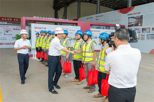 劉運(yùn)參觀了昌大建科產(chǎn)業(yè)園裝配式建筑生產(chǎn)線,慰問一線員工。隨后,在昌大建科二樓會議室組織了座談交流。徐鵬強(qiáng)董事長匯報(bào)了昌大集團(tuán)有關(guān)情況,感謝劉運(yùn)書記親自選定昌大作為包靠企業(yè),表示昌大集團(tuán)在市委、市政府的正確領(lǐng)導(dǎo)下,各項(xiàng)工作都處在一個高位發(fā)展水平上,目前雖然遇到了很多困難,但昌大有信心在市委和市政府的領(lǐng)導(dǎo)下渡過難關(guān)并引領(lǐng)全市建筑企業(yè)實(shí)現(xiàn)高質(zhì)量發(fā)展。昌大建科總經(jīng)理李飛匯報(bào)了昌大建科關(guān)于裝配式建筑相關(guān)情況。