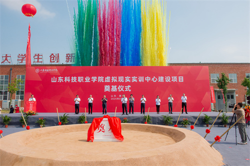 2025年7月17日上午,山東科技職業(yè)學院虛擬現(xiàn)實實訓中心項目奠基儀式在項目現(xiàn)場隆重舉行。學院黨委書記鄭德前,集團公司總裁朱九洲,山東省工程咨詢院黨組成員、副院長何健,山東建筑大學設計集團有限公司董事長、總經(jīng)理李端杰,招商銀行濰坊分行黨委書記、行長潘兆強,學院黨委委員、紀委書記秦建坤,學院黨委委員、副校長徐曉雁、董傳民,學院副校長張振東出席奠基儀式。